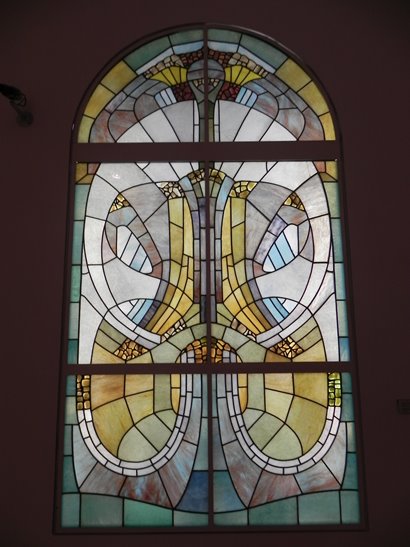 Típico vitral Art Nouveau composto de formas orgânicas conservado no Kunstpalast em Düsseldorf, Alemanha.
