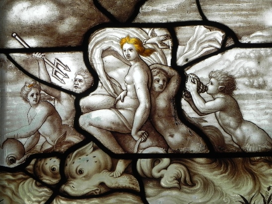 Vitral renascentista de tema mitológico na Galeria de Psiquê, representando personagem de mesmo nome.