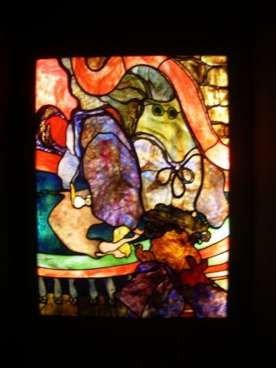 Louis Comfort Tiffany, americano e filho do proprietário da célebre joalheria, levou o vitral Art Nouveau a seu esplendor. Ele criou um tipo de vitral único, que no lugar do chumbo, usa o cobre para contornar os pedaços de vidro que, diferente das tendências anteriores, podiam ser opacos. O uso do cobre permitiu que o vitral ganhasse, literalmente, uma nova dimensão. Os vitrais poderiam não somente ser feitos como placas para serem colocadas nas janelas, como os vitrais medievais, mas poderiam também tomar as formas mais diversas, se adequando a objetos decorativos, por exemplo, abajures, os mais famosos criados por Tiffany, que decorou até mesmo a Casa Branca.