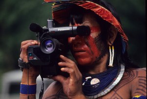 Kaiapó filmando encontro de Altamira – Pará Crédito Nair Benedicto/N Imagens