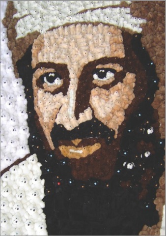 O retrato do terrorista foi composto de ursos de pelúcia, opondo assim a fofura ao terror.
