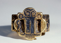 Anel matrimonial octogonal, ouro nigelado, diam. 2.3 cm, século VII. Conservado no Dumbarton Oaks, Washington, Estados Unidos.