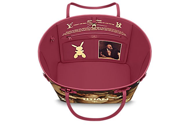 Dentro das bolsas – naquelas em que há espaço – temos uma foto do mestre em questão, um pouco sobre sua vida e o obra, o nome e a data da obra representada, além de algumas frases sobre o próprio Jeff Koons. História da arte em objetos da moda é algo que eu particularmente aprecio.