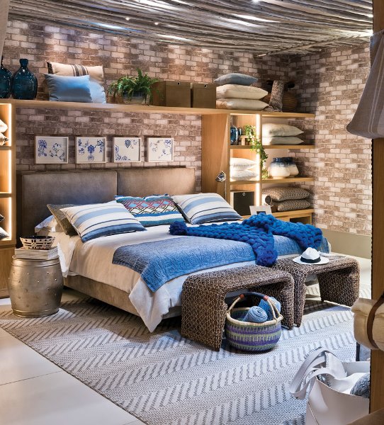 No ambiente criado por Paula Gambier para a estilista Lu Monteiro, temos algo bem brasileiro, com belas cores, diversas texturas e materiais, tecidos naturais e plantas por toda parte. O destaque vai para as prateleiras industriais e para a cabeceira Agadez.