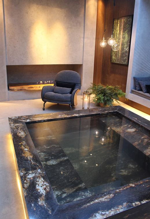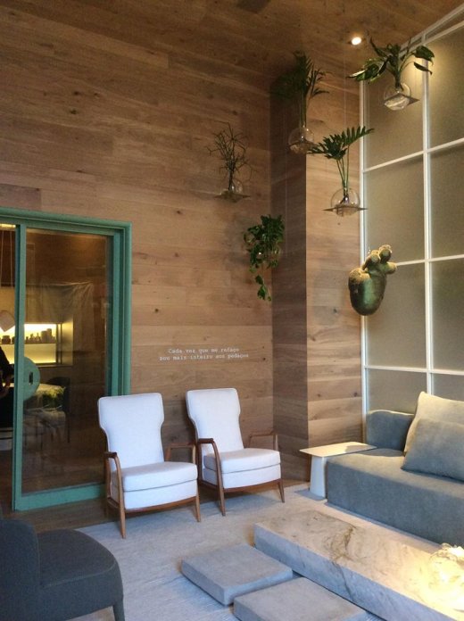 Fugindo da decoração tradicional, Andrea Teixeira e Fernanda Negrelli criam um spa com muito verde, materiais refinados e iluminação que valoriza a escolha dos revestimentos.