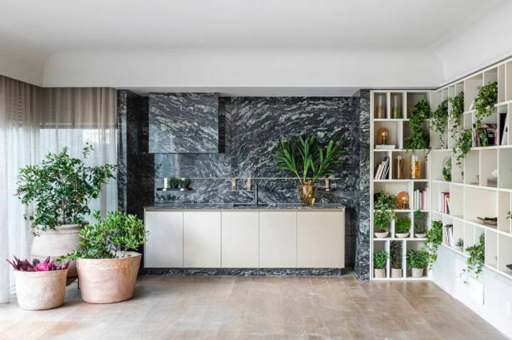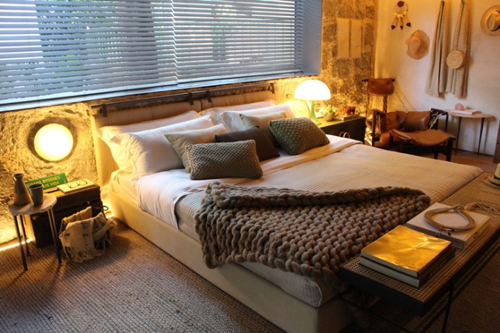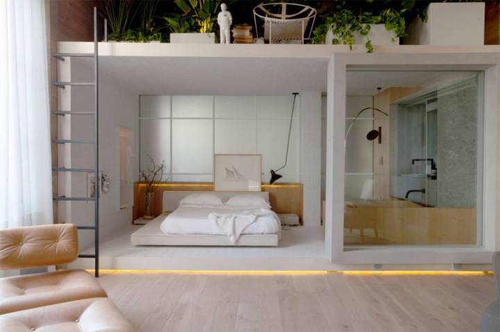 Buscando um refúgio da vida agitada, as arquitetas da Triplex Aquitetura propõe a “Casa Raízes”, onde encontramos uma casa sustentável e energizada através das plantas, como é o caso da araucária englobada à mesa da cozinha. Para enfatizar a conexão com o eu, objetos pessoais das arquitetas foram deixados no ambiente, como é o caso dos óculos na mesa de cabeceira.