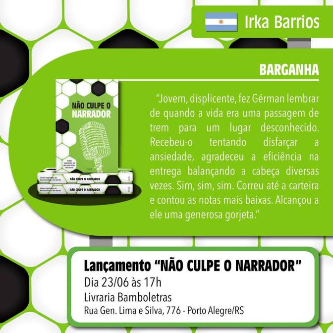 A seleção, que tem por base o time que cursou a Oficina de Criação Literária do professor, craque e mestre Luiz Antonio de Assis Brasil em 2015, tinha como meta criar contos inéditos a partir de um fio condutor: o Mundial. Assim nasceu Não culpe o narrador.