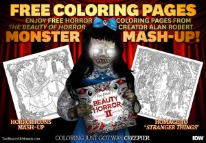 Além dos livros de colorir, foram lançadas no site da editora, IDW Publishing, duas ilustrações gratuitas exclusivas, feitas por Allan Robert: uma em que ele criou uma mistura de diversos ícones do horror, e outra em que ele ilustrou os personagens da série Stranger Things.