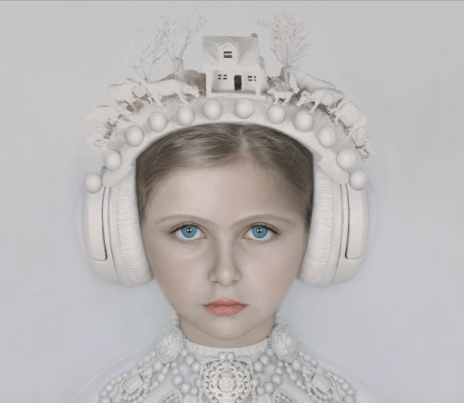 Algumas vezes, os fones não estão diretamente presentes na imagem, mas são lembrados através de coques ao lado da cabeça ou outros elementos que lembram sua forma arredondada próxima às orelhas. Esse anacronismo – algo que estaria situado em tempo errado -, que nos lembra que não, não estamos vendo uma imagem de outro século, representa o isolamento proporcionado por esse objeto, típico da contemporaneidade, no qual fones de ouvido de marca são ostentados tal qual coroas reluzindo de pedras preciosas, sobretudo nas gerações mais novas.