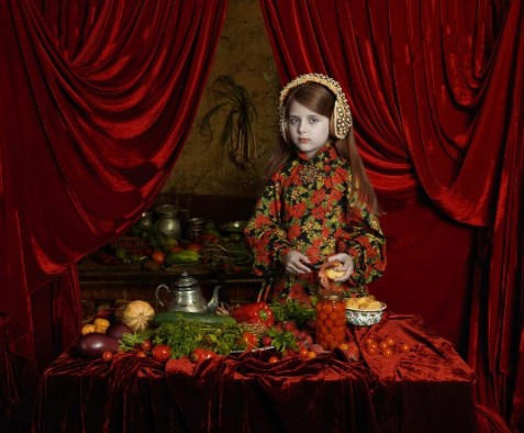 Ainda de maneira geral às suas criações, temos o interessante diálogo entre fotografia e pintura. A história da arte ocidental conhecida pela artista se torna matéria prima de sua criação, que reinterpreta e faz releituras, sobretudo, da pintura holandesa do século XVII. Assim, a composição faz referencia a pinturas antigas e a fotografia e a manipulação digital posteriores trazem uma perfeição lisa, quase impossível de outra maneira.