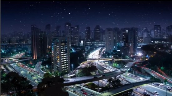 Na obra Coreografia do Caos, a artista Betina Samaia combinou vídeo, fotografia e manipulação digital – a ponte no primeiro plano não existe e alguns prédios e outros elementos não se localizam no local mostrado na imagem – para criar um vídeo arte muito bonito, no qual parte da composição se move – os carros – e outras se mantêm estáticas, em uma verdadeira coreografia do caos.