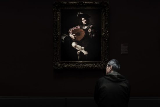 Conheci o trabalho da Isis Gasparini na SP-Arte Foto desse ano – essa é uma das vantagens de visitar exposições, não é? -, e fiquei simplesmente apaixonada. A série Ter à distância mostra imagens de visitantes frente a pinturas traz um diálogo entre a pintura e a fotografia, o espectador e as obras, através de contrastes de áreas escuras e outras fortemente iluminadas que lembra o efeito do chiaro escuro nas pinturas caravagescas.