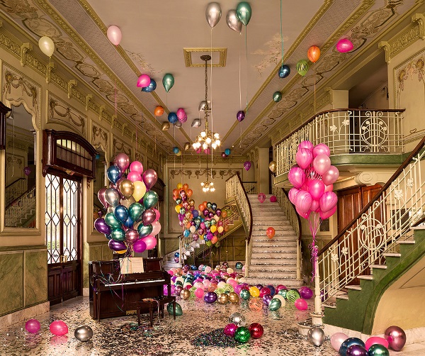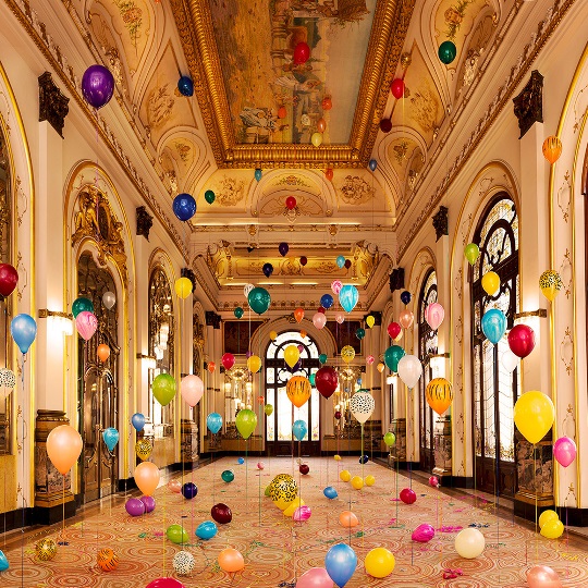 Voltando aos balões, esses elementos coloridos, flutuantes, leves, efêmeros e por vezes, translúcidos contrastam com seu entorno, rebuscado, sério, pesado, tradicional e antigo, criando assim uma atmosfera carregada de surpresa e do inesperado, e, eu diria, até mesmo de sonho.