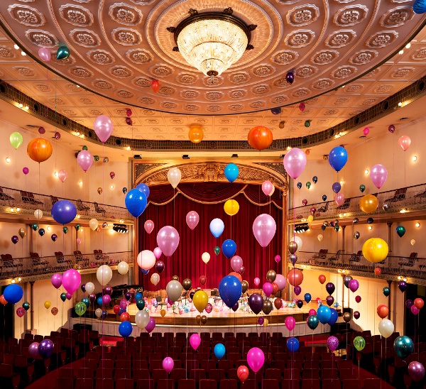 Finalmente, creio que haja algo de quase melancólico em ver esses locais de festa – lembremos que haviam, no passado, bailes de gala nos teatros, seus saguões sendo verdadeiros locais de sociabilidade – vazios de seres humanos e repletos de balões, tal qual em uma festa que já acabou.