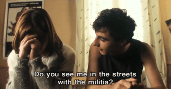 As cenas em plano geral que mostram o prédio onde Tarek mora com sua família, aliás, são muito significativas: as janelas e construções um tanto amontoadas em uma vila residencial dão uma sensação de confinamento que vão se tornando cada vez mais claustrofóbicas conforme a guerra se agrava e os conflitos entre vizinhos, parentes e amigos se tornam mais violentos. Mas, o que no começo acontece apenas fora da casa da família do jovem protagonista, de repente toma lugar dentro do ambiente doméstico, enquanto sua mãe passa a rejeitar com crescente veemência a estadia deles em Beirute. Em suma, por mais que alguns dos habitantes tentem ignorar a gravidade da guerra, ela se esgueira em todas as esferas da vida social.