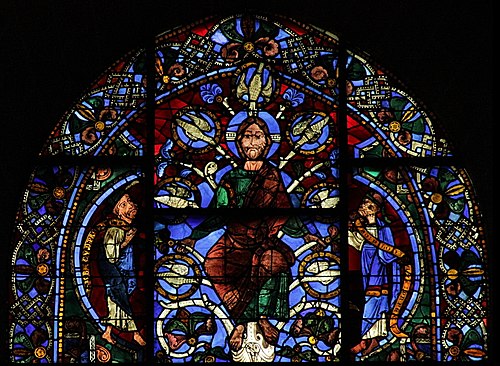 , vitral (vidro, óxidos metálicos e chumbo), 1150. Conservado na Catedral Notre-Dame, Chartres, França.
