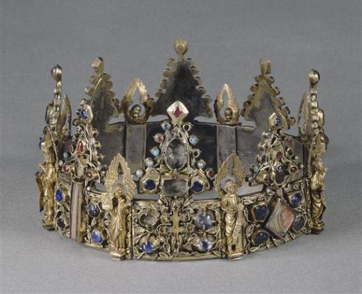 Coroa-relicário dita de São Luís ou Coroa de Liège, prata dourada e pedras preciosas, 3o quarto do século XIII. Conservada no Museu do Louvre, Paris, França.