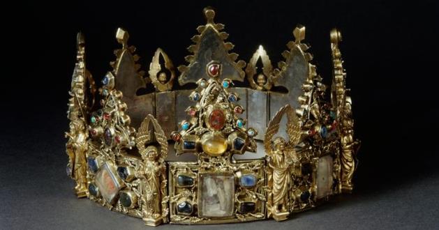 Coroa-relicário dita de São Luís ou Coroa de Liège, prata dourada e pedras preciosas, 3o quarto do século XIII. Conservada no Museu do Louvre, Paris, França.