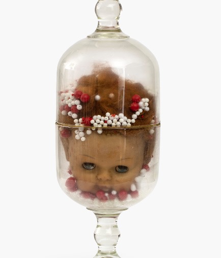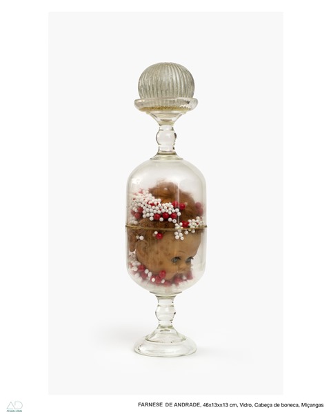 Farnese de Andrade, Sem título, assemblage: vidro, cabeça de boneca e miçangas, 46 x 13 x 13 cm, 1970. Coleção Marcelino Rafart de Seras.