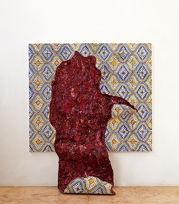 Adriana Varejão, Língua com Padrão Sinuoso, óleo sobre tela e poliuetano em suporte de madeira e alumínio, 200 x 170 x 57 cm, 1998. Coleção particular.