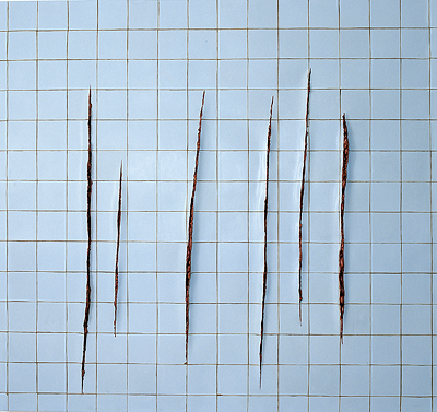 Adriana Varejão, Parede com Incisões a la Fontana, óleo sobre tela e poliuetano em suporte de madeira e alumínio, 190 x 200 cm, 2000.