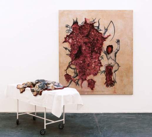 Adriana Varejão, Extirpação do Mal por Incisão, instalação: óleo sobre tela e objetos, 1994.