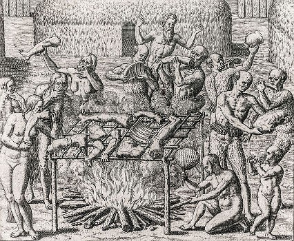 Ilustração de Theodore de Bry inspirada nas viagens de Hans Staden.
