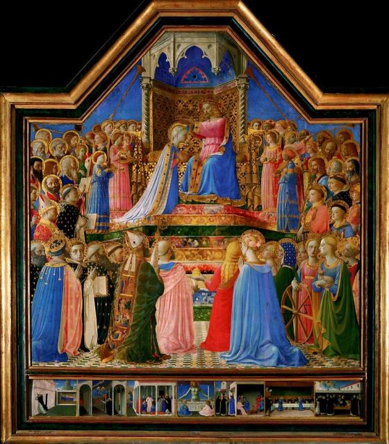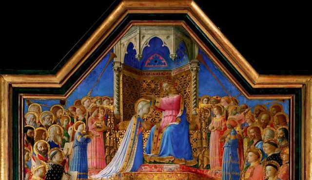A Coroação da Virgem, de Fra Angelico, é um dos destaques da pintura italiana renascentista na coleção do Museu do Louvre. A obra mostra a coroação da Virgem Maria, episódio que sucede a Assumpção da Virgem, quando esta sobe aos céus de corpo e alma. Essa história não consta na Bíblia, mas em outras fontes ditas apócrifas, tal como o best-seller literário do século XIII, Legenda áurea, de Tiago de Voragine.