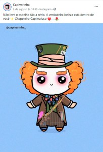 E no incrível trabalha de Jéssica, mais conhecida como Capivarinha, artista natural de Frederico Westphalen, do interior do Rio Grande do Sul, encontramos representações das mais diversas personalidades, desde personagens de animações, de séries, quadrinhos e filmes, até ícones da música pop e rock, assim como criações únicas, inspiradas em estilos, como gótico, kawai, emo, etc.
