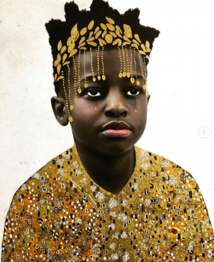 A maior parte das obras que fazem parte da série The Redemption (A Redenção, em português), criadas em 2018 e 2019 por Tawny Chatmon, fazem referência direta aos trabalhos da fase dourada de Klimt – O beijo e A dama dourada, dos quais já falamos aqui na coluna, estão entre os mais importantes do pintor austríaco. Além do uso da folha de ouro, a artista americana também se inspira nas telas dele ao pintar formas geométricas circulares e retangulares nas roupas dos personagens em seus retratos.