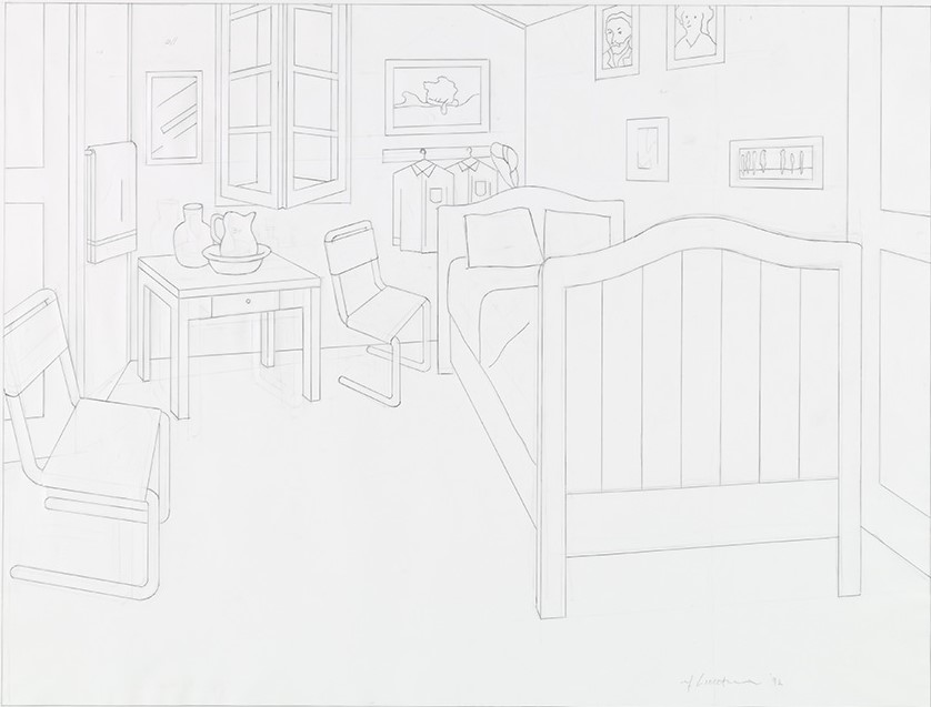 Roy Lichtenstein, Drawing for Bedroom at Arles (Desenho para Quarto em Arles), grafite sobre papel vegetal, 87,3 x 115,6 cm, 1992. Conservado National Gallery of Art, Washington, EUA.