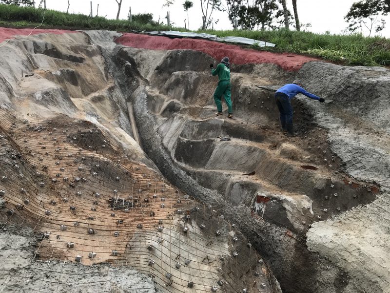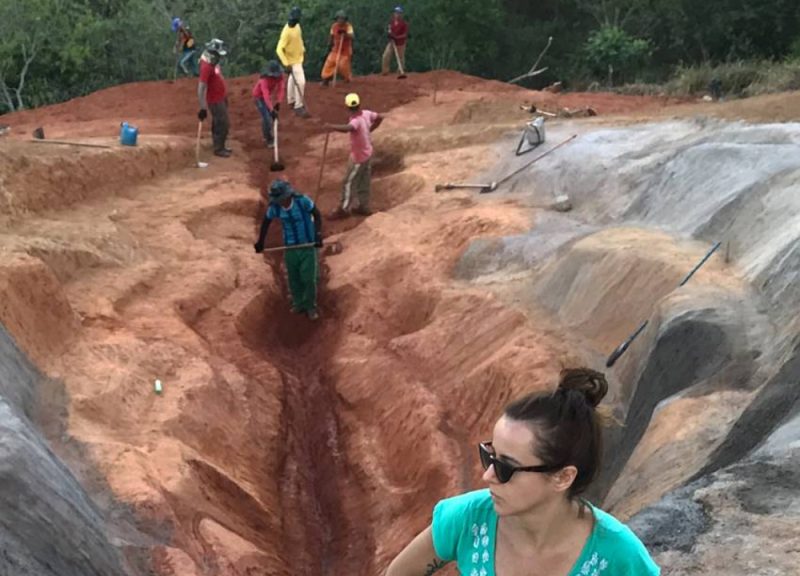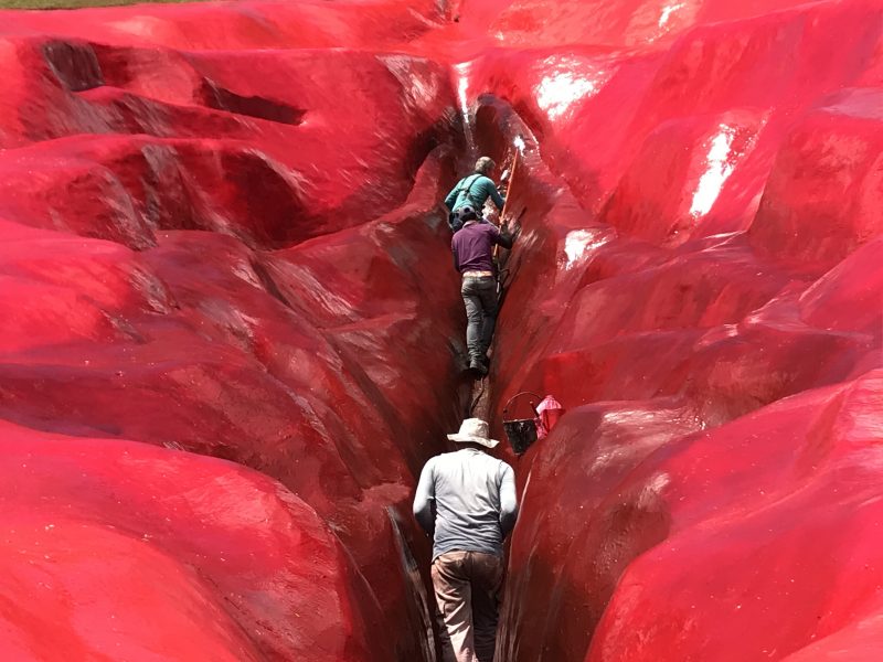 A polêmica land art – tipo de obra na qual o artista interfere na paisagem – foi o resultado de uma residência artística na Usina da Arte, em parceria com o Museu de Arte Moderna Aloisio Magalhães, de Recife, e demorou onze meses para ser concluída – devido à pandemia e à estação das chuvas -, contando com a ajuda de uma empresa de engenharia civil e diversos trabalhadores. Uma grande fenda de seis metros de profundidade foi escavada usando pás, pois o terreno e as formas que a criadora desejava conferir ao trabalho final não permitiam o uso de uma máquina. Depois, a fenda foi coberta com concreto, criando o relevo que a faz parecer com uma vulva, e pintada com tinta náutica, para aguentar as intempéries, tomando, por fim, a superfície de 33 por 16 metros.