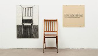 Joseph Kosuth é um artista que está na ativa até os dias de hoje. Ele usa também a linguagem escrita para expressar suas mensagens em obras; como em 1965, quando criou uma das mais icônicas obras conceituais “Uma e três cadeiras” onde “Ele pede que o espectador analise como a arte e a cultura são forjadas por meio da linguagem e dos significados, e não por meio da beleza e do estilo” (FARTHING, 2011, p. 502). Sensacional!