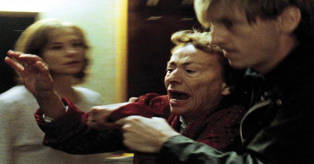 Isabelle Huppert interpreta magistralmente uma mulher doente: pianista de sucesso, deve ter seus 40 anos e deve satisfações das mais infantis a sua mãe – inclusive dorme com esta, embora tenha seu próprio quarto. (Não posso deixar de lembrar de Cisne negro, que parece se aproximar desse enredo de Haneke, embora sem a mesma força dramática.) Ela mutila sua genitália e parece ter prazer com isso – aqui nova relação e de novo ponto para o Haneke: no filme Anticristo, Lars von Trier, que é muito bom diretor, mas excêntrico demais, mostra uma cena parecida com isso que descrevi antes, porém, com o fetiche da imagem, da apelação da violência, perde potência dramática, ao passo que Haneke, ao apostar na sutileza da violência, ele sim eleva a cena a um nível de tensão altíssimo.