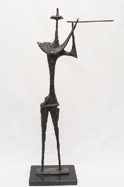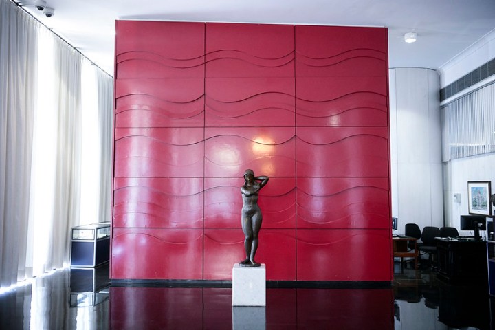 O flautista, de Bruno Jorge (1962), estimada em R$ 250 mil, destruída, com pedaços da obras espalhados pelo salão;