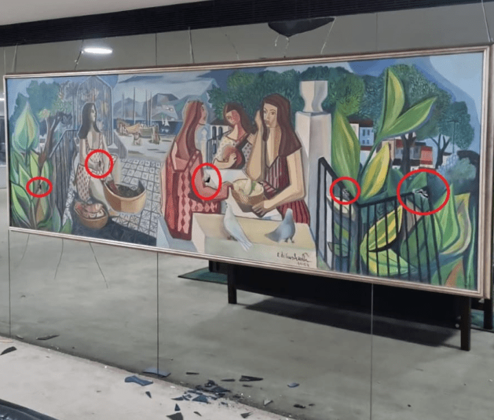 Durante os atos de terrorismo no dia 8 de janeiro de 2023 na Praça dos Três Poderes, em Brasília, inúmeras peças históricas e obras de arte foram depredadas, aqui estão algumas delas: