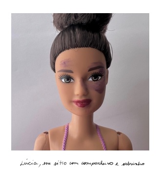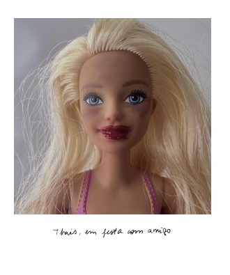 A artista criou obras que trazem essa reflexão através de fotos impressas em lona (para serem expostas ao ar livre) de bonecas Barbie dos mais diversos tipos físicos, maquiadas com manchas em tons de roxo, representando hematomas, e, por consequência, a agressão, não somente física, mas também sexual, psicológica, moral e patrimonial que mulheres sofrem diariamente. Em 2022, a cada 10 minutos, foi registrado um caso de violência doméstica no Brasil – imaginemos ao número que chegaríamos com o que não chegou a ser registrado, muitas vezes por medo de mais agressões.