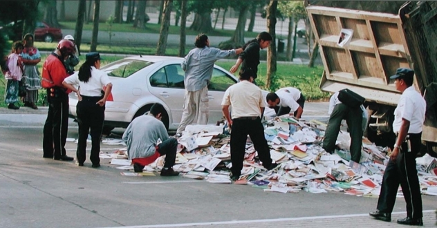 Aníbal López ou A-153167, Una tonelada de libros tirada sobre la Avenida de la Reforma, performance, 2003. Aníbal López, artista guatemalteco que assinava com o número de seu documento de identidade, A-153167, foi o pioneiro da performance de inspiração política, … Continuar lendo OBRA DE ARTE DA SEMANA: ‘Una tonelada de libros tirada sobre la Avenida de la Reforma’ de Aníbal López