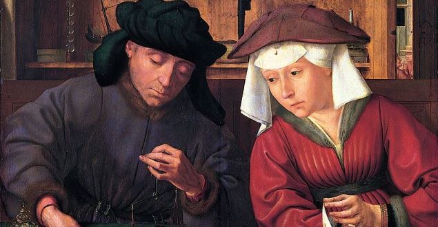 Quentin Matsys, O banqueiro e sua mulher, óleo sobre painel de madeira, 74x68cm, 1514. Conservado no Museu do Louvre, Paris, França. Nessa pintura vemos simetricamente posicionados um banqueiro ou cambista que pesa moedas de ouro e sua mulher que observa … Continuar lendo OBRA DE ARTE DA SEMANA: O banqueiro e sua mulher de Quentin Matsys